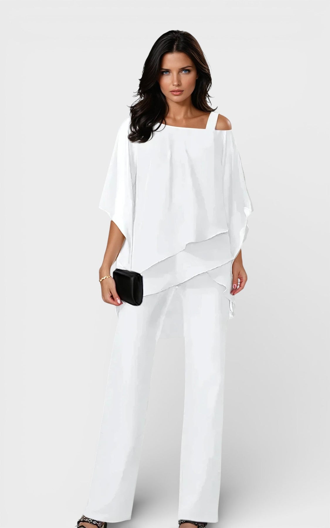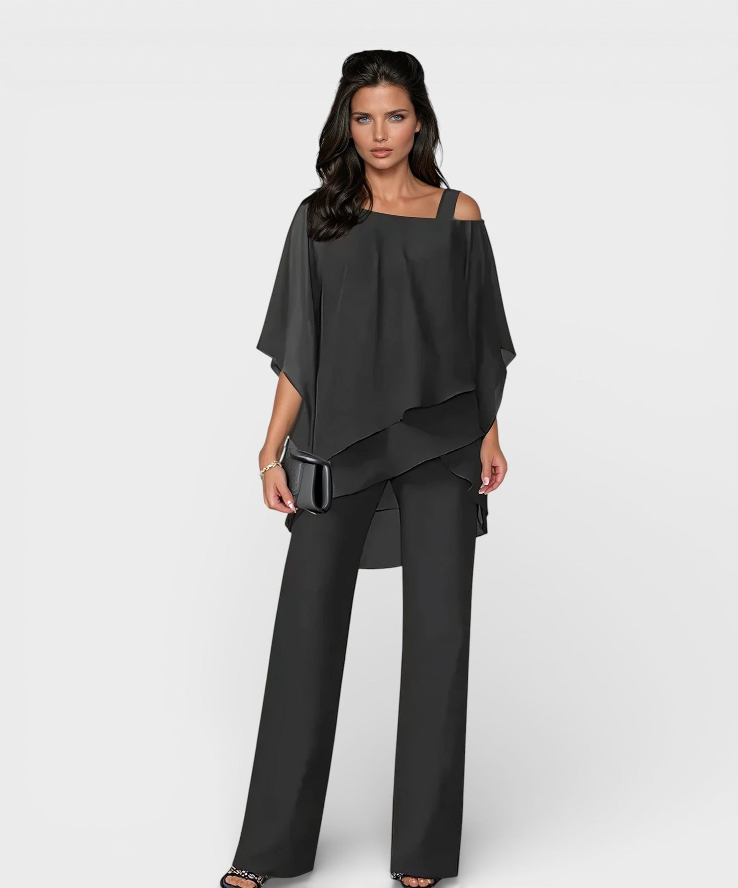 El set Noelia™ aporta un aire moderno y elegante a cualquier ocasión. Con un diseño de dos piezas de corte relajado, combina comodidad y sofisticación en una silueta que realza con suavidad tu figura. Perfecto tanto para eventos especiales como para disfrutar del día a día con estilo y confianza.