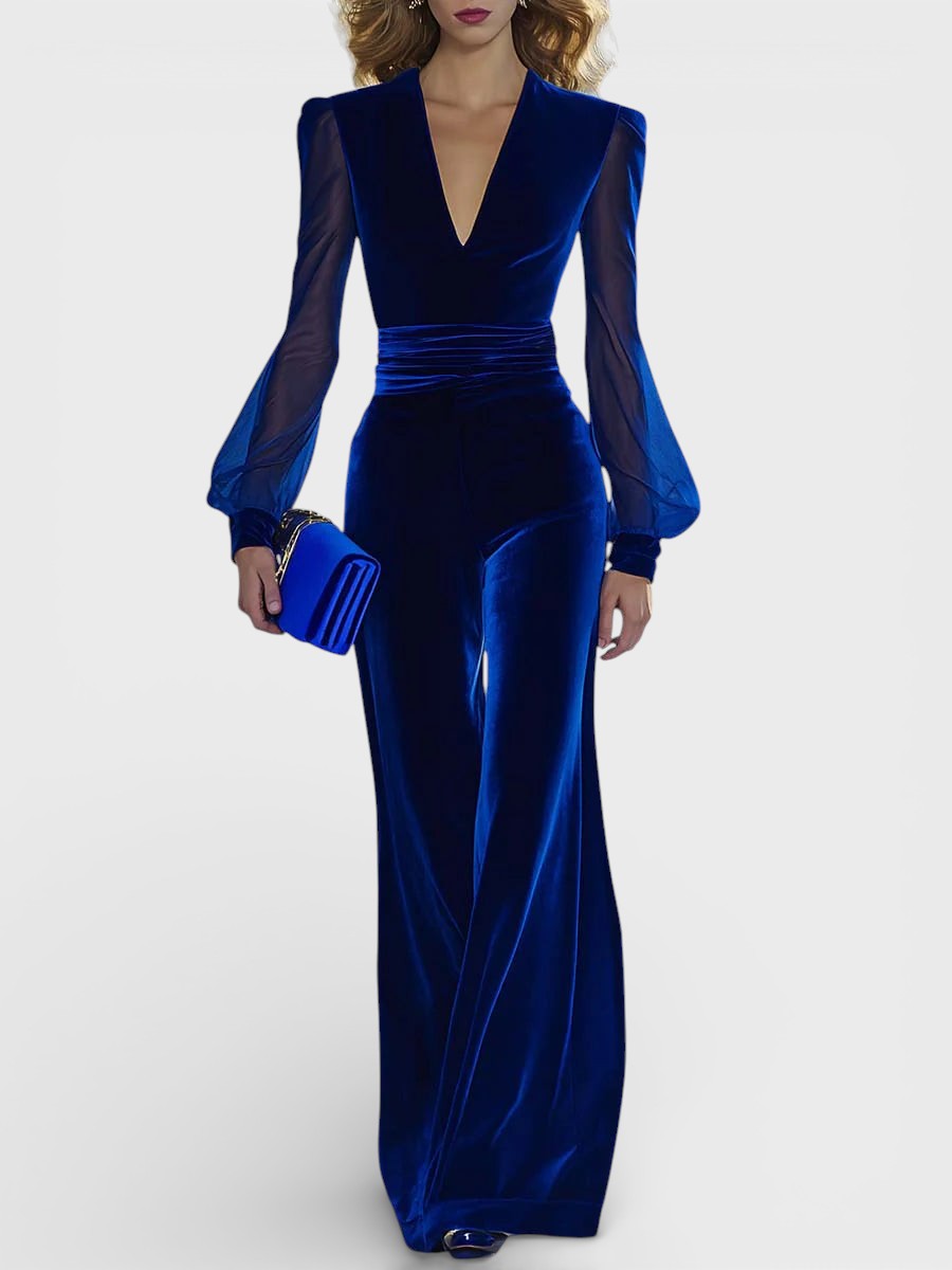 El Mercedes™ es un mono largo de terciopelo que combina elegancia y modernidad en una sola pieza. Con un escote en V profundo y mangas de chiffon transparente, este diseño resalta la belleza femenina mientras aporta un aire de sofisticación. Su cintura drapeada define la figura, y las piernas anchas estilizan el cuerpo, creando un look refinado para las ocasiones más especiales.
